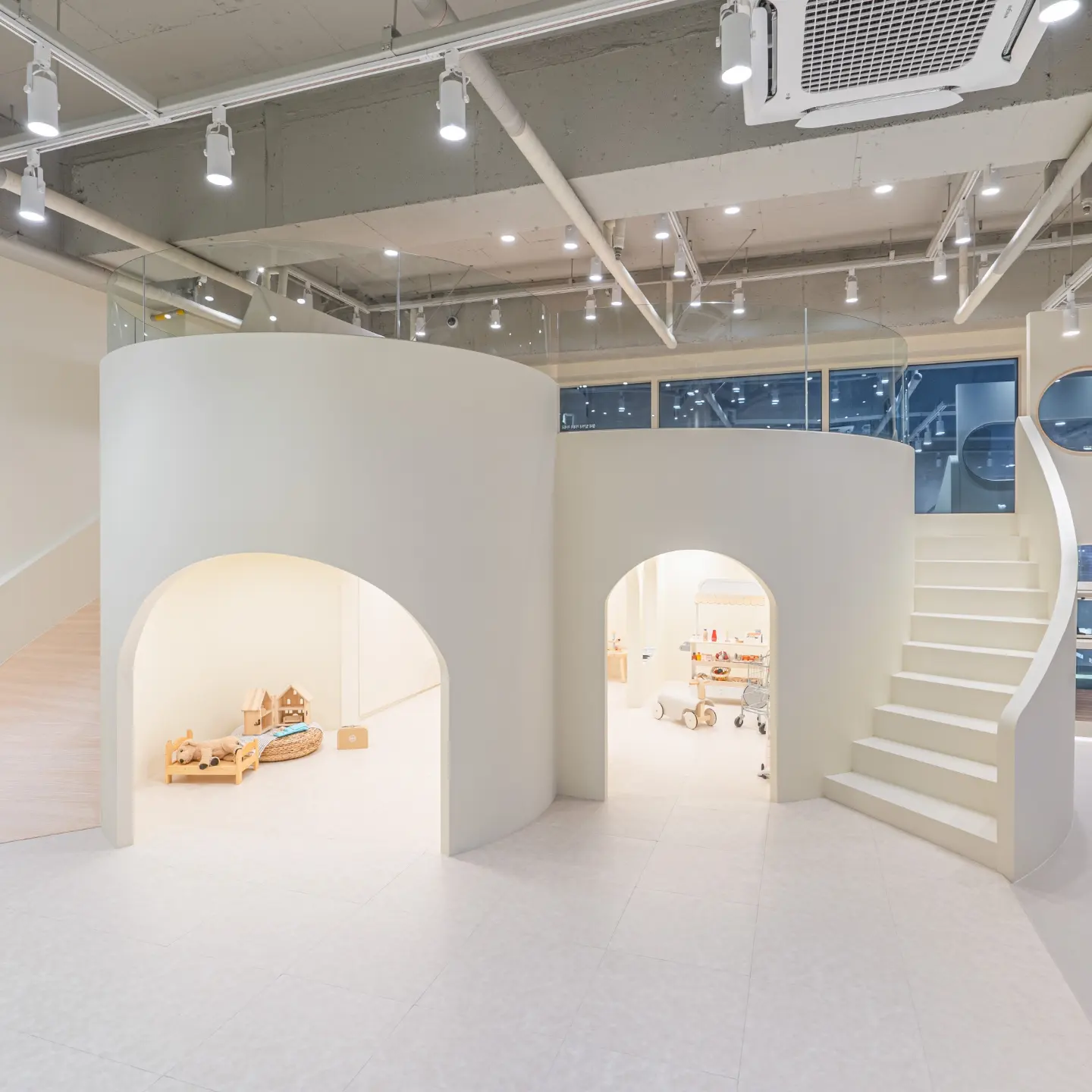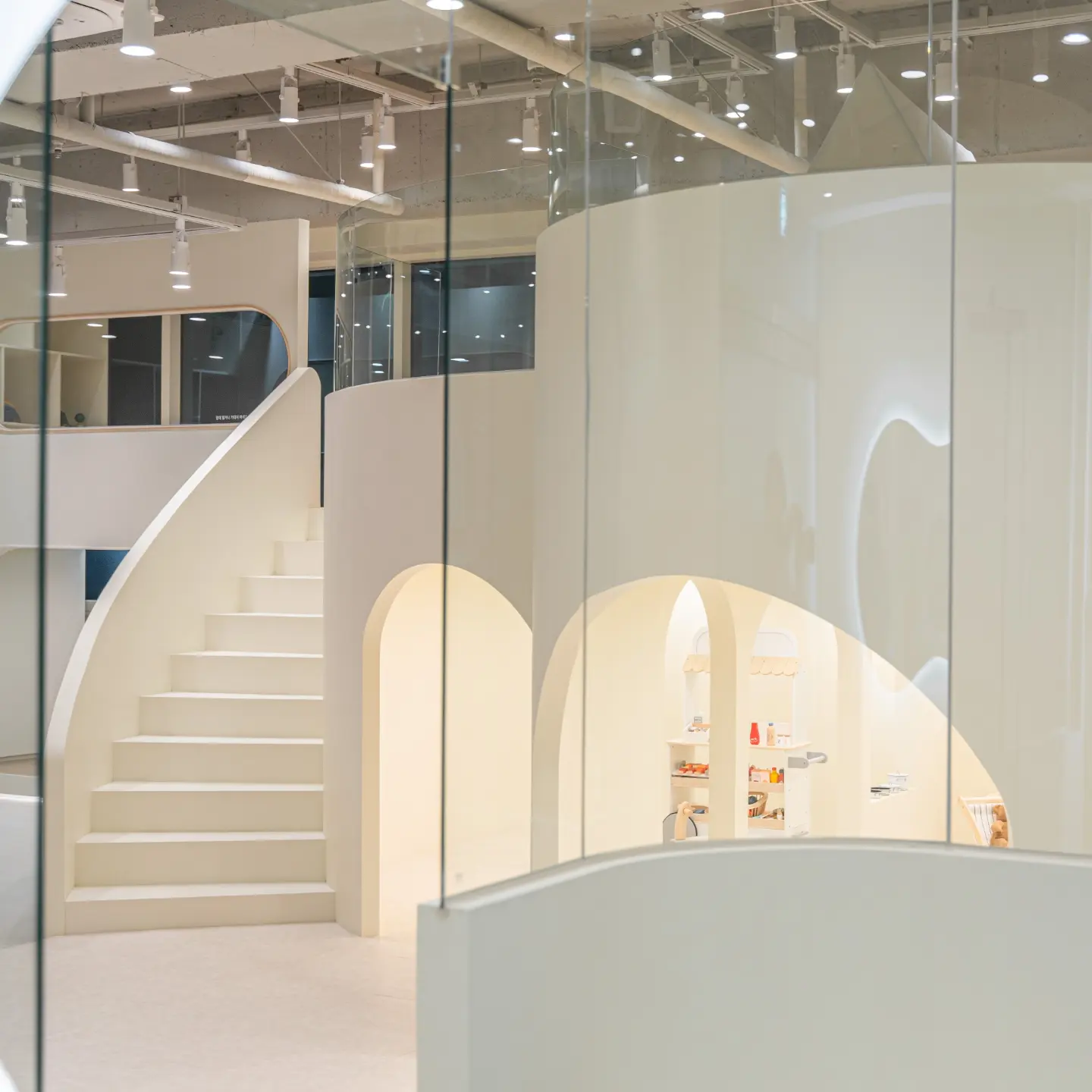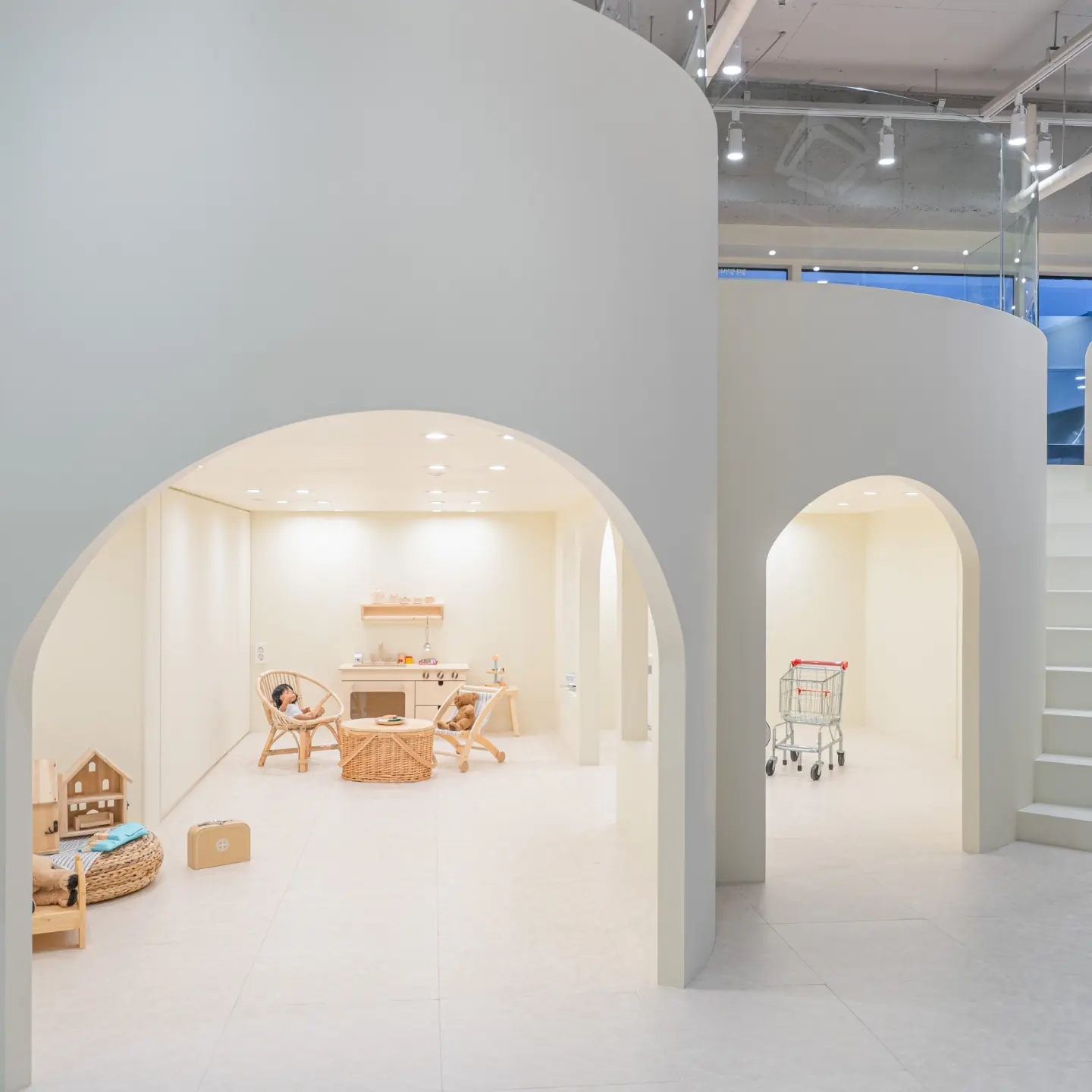 부드러운 곡선과 열린 동선으로 아이들의 움직임과 시선을 자연스럽게 유도합니다.