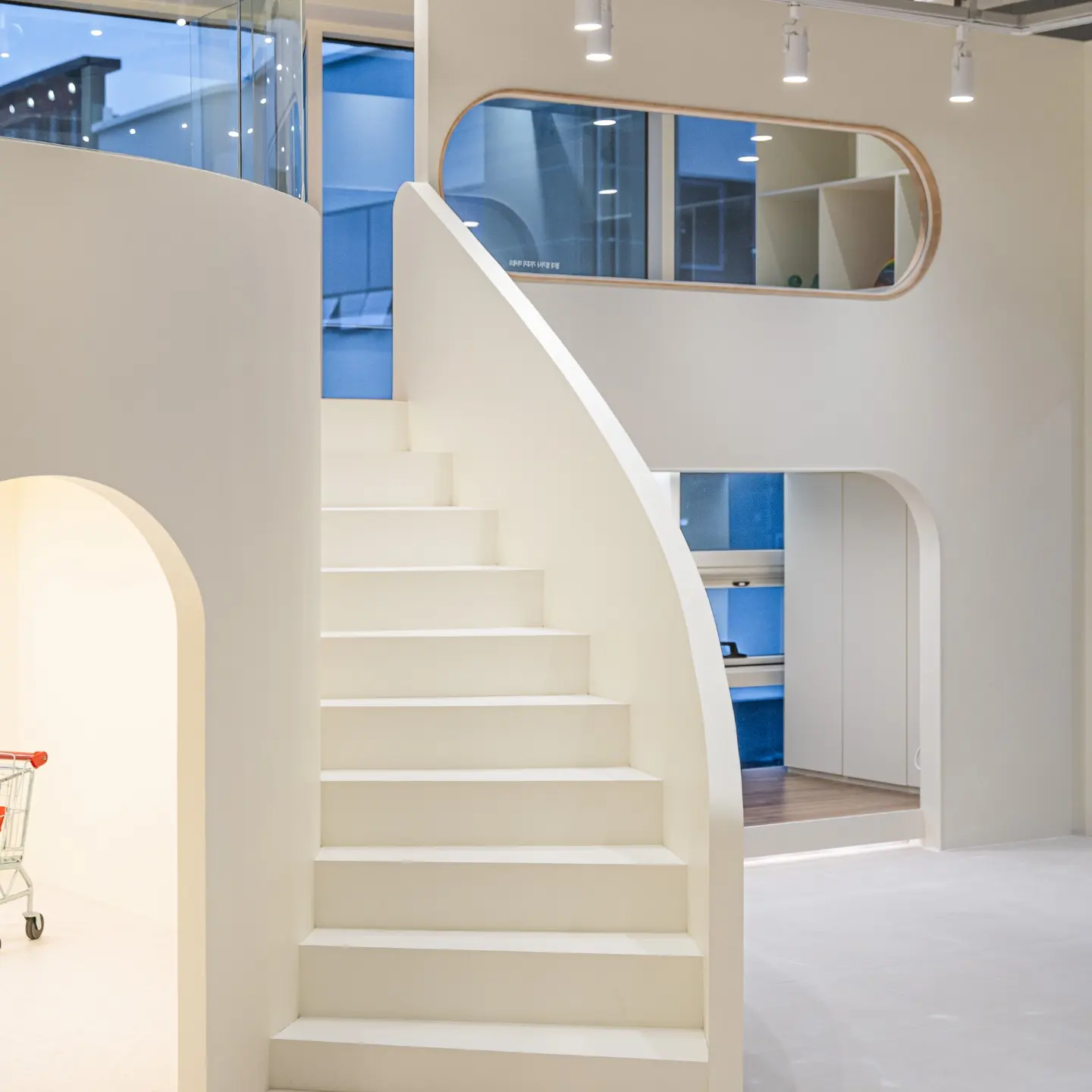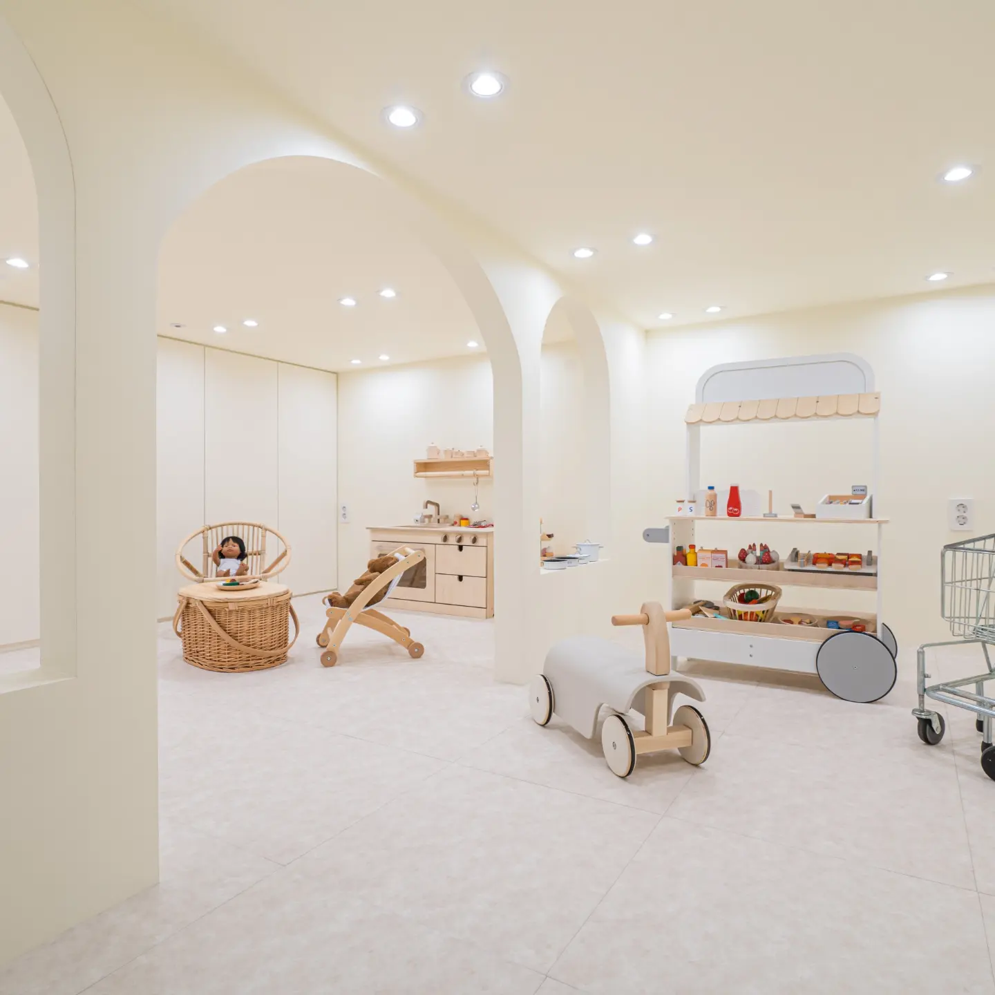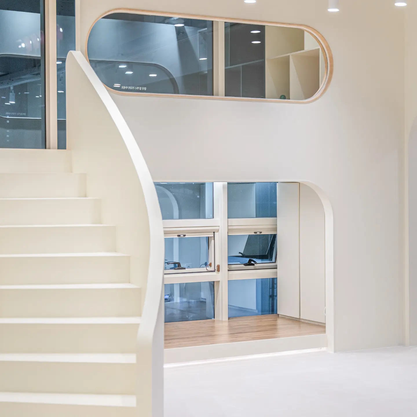 부드러운 곡선과 열린 동선으로 아이들의 움직임과 시선을 자연스럽게 유도합니다.